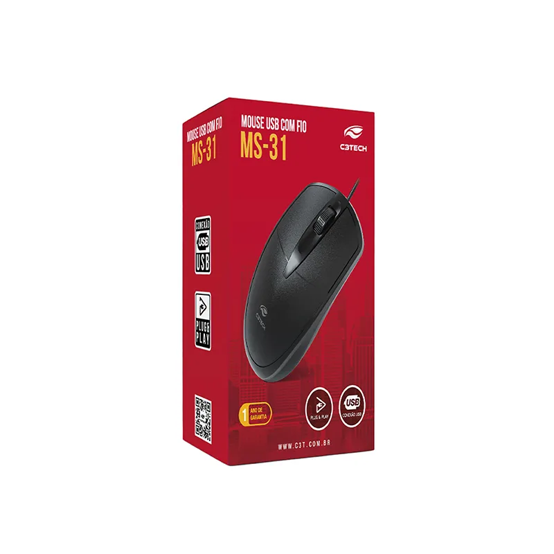 INFORMAÇÕES: Mouse USB MS-31BK Preto da C3Tech oferece um alto desempenho e qualidade. MOUSE ÓPTICO USB MS-31BK 1000DPI PRETO – C3TECH tem seu sistema plug and play facilita sua utilização, basta conectar o receptor em uma porta USB em seu dispositivo, você poderá fazer suas tarefas com precisão e conforto.