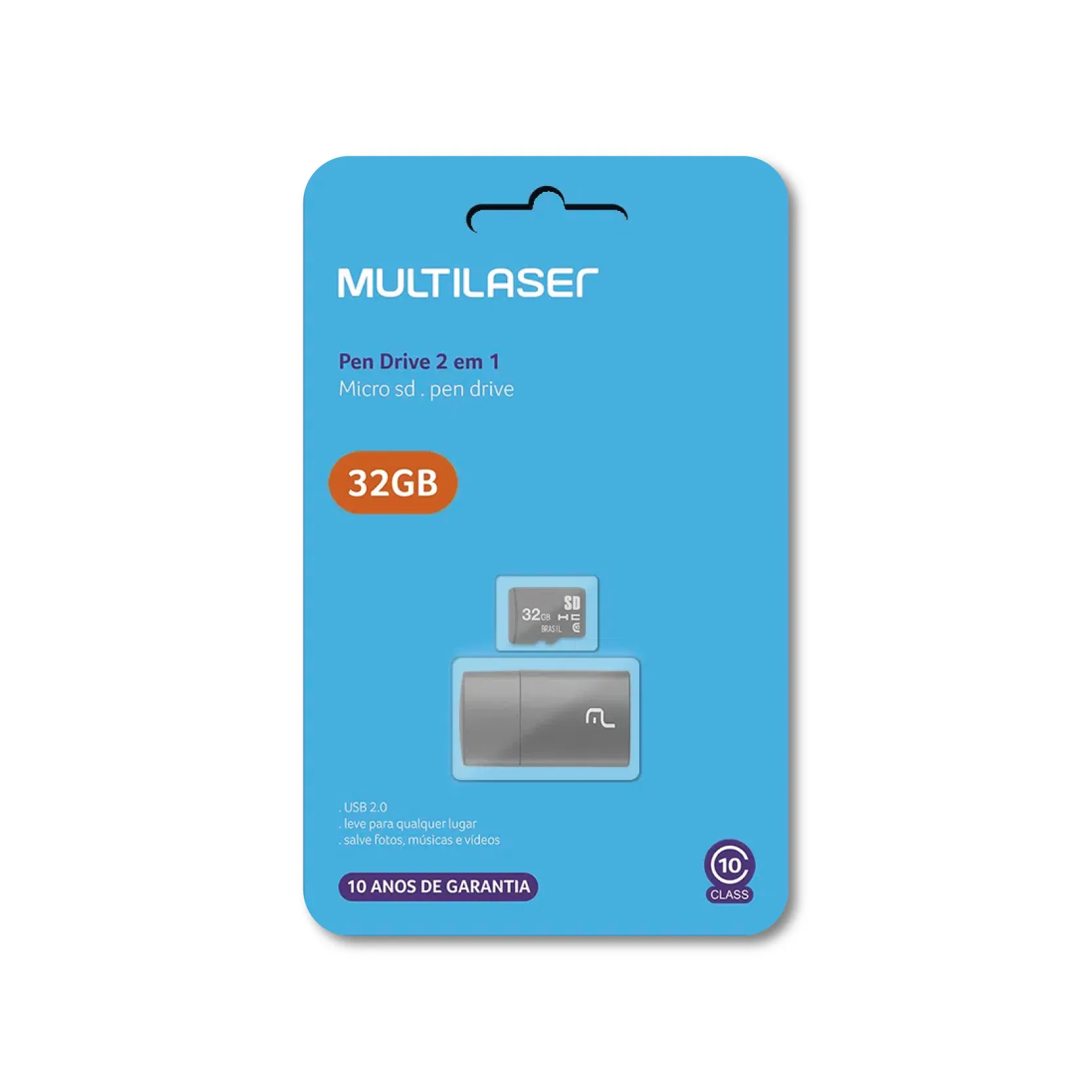 1 – PEN DRIVE 32GB ADAP MICRO SD + CART MEM CLAS 10 MC163 – MULTILASER